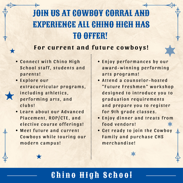 Cowboy Corral 8th grade night at Chino High School- Wednesday 2/25/26